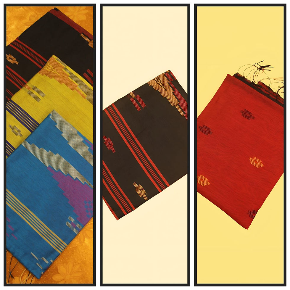 Dhakai Jamdani once woven for royalty is a masterpiece in cotton with hand-inserted floating motifs. Soft Resham Jamdani reimagines this elegance in silkier textures and vibrant colors. Together, they blend timeless craftsmanship with today’s style.